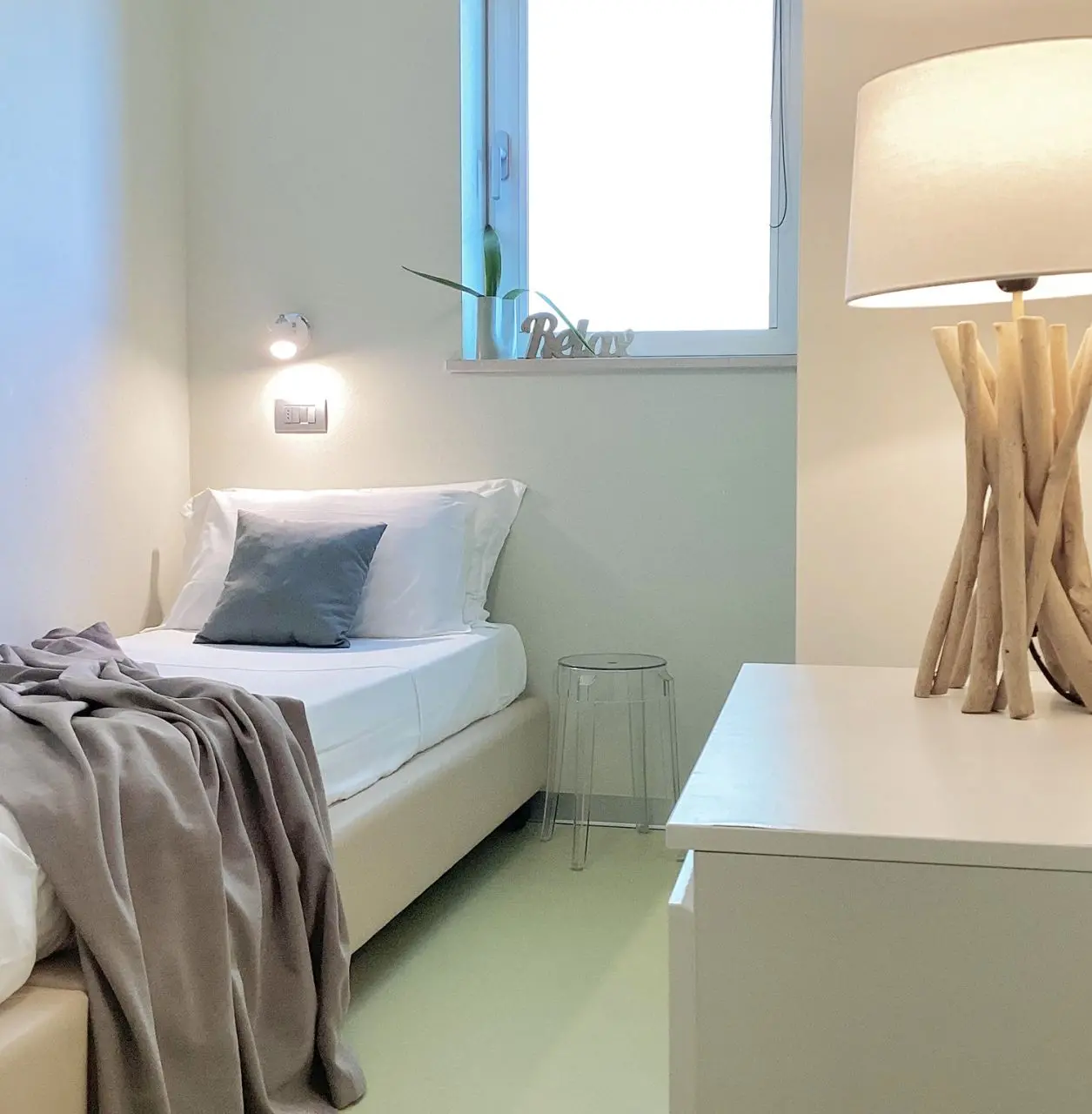 Il design minimale ed elegante si armonizza con il contesto marittimo, rendendo questa camera ideale per chi cerca una vacanza senza pensieri, all’insegna del relax e della rigenerazione.